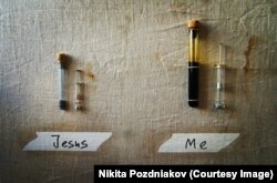 – У Иисуса там не совсем кровь, это серебряная субстанция, я туда налил серебрянки. Я – живой человек, у меня есть тело, больше возможностей живым, здоровым принести что-то доброе, светлое в этот мир, чем у мертвого Христа. Поэтому пробирка и шприц у меня больше.