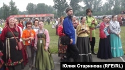 Музыканты из Тувы на "Обрядовой поляне" провели мастер-класс по хоомею – горловому пению. Но тут уж повторить за ними зрителям было невозможно – хоомею учатся много лет, можно сказать, всю жизнь.