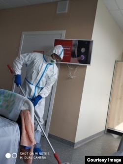 Алдар прошел медобследование, затем инструктаж по работе. Его научили правильно надевать и снимать "скафандр", как он сам называет свой защитный костюм.