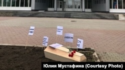 Жители Томска устроили в центре города "похороны местной медицины". Активисты привезли к зданию администрации области деревянный гроб и таблички с названиями учреждений здравоохранения, где власти открывали временные госпитали для больных коронавирусом. По мнению протестующих, в действиях чиновников – "нет логики". Специальные палаты оборудуют в разных клиниках, а потом закрывают и переносят их в другие места. Такая практика применяется с начала пандемии.