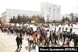 – Да он сам себя боится. А нам он тут никому не нужен. Мы мирные люди. Можем, конечно, быть суровыми дальневосточниками. Но протестуем мирно, ничего не громим, как он себе навоображал. Может, он просто сам и верит в то, что мы "горлопаны" и идем тут все крушить? – добавляет другой участник протестного шествия Андрей.