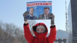 На акцию вышли около 20 человек. Один участник держал плакат с цитатой "Коррупционная власть ещё ни разу сама не уходила. Свободу Навальному!". Девушка по имени Юлия подняла над головой плакат с портретами Алексея Навального и экс-губернатора Хабаровского края Сергея Фургала, с надписью "Выпускай".