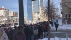 В Новосибирске около тысячи человек собрались в Первомайском сквере. Полиция начала задержания, людей по одному выхватывают из толпы и уводят в автозаки.