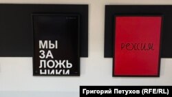 В белом мансардном пространстве в центре Берлина немноголюдно. "Событие мы специально не рекламировали, – объясняет куратор. – Идет война, и здесь, помимо выставочного помещения, находятся рабочие места журналистов оппозиционных СМИ. В этих условиях мы опасаемся людей с улицы".