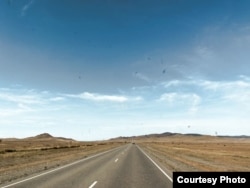 У шлагбаума становится тесно. Все смотрят в сторону Монголии. Не видно ничего. Шлагбаум, кирпичное здание КПП. А за ним — бескрайние степи.