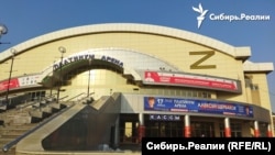 Лозунг "Своих не бросаем" остался на легкоатлетическом манеже на набережной – примерно такой баннер с Z из георгиевской ленты был на библиотеке.