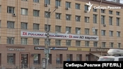 Долгое время пропагандистские баннеры висели на здании краевой библиотеки и Дальневосточного художественного музея. Но обнаружить их сейчас не удалось: на них жаловались некоторые посетители.