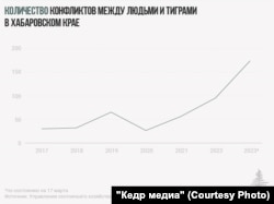 Согласно официальным данным охотнадзора Хабаровского края, ситуация за последние пять лет серьезно обострилась. Если в 2017 году между людьми и тиграми было зафиксировано 30 конфликтных ситуаций, то в 2022 году – 95, а за одни только январь и февраль 2023 года – уже 106 случаев.